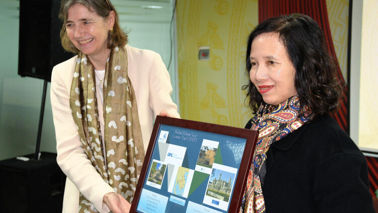 On February 27, 2025 Ulrike Grote and Trung Thanh Nguyen from the Leibniz University Hannover (LUH) and Truong Lam Do from the Vietnam National University of Agriculture travelled to Ha Tinh to meet with Vice Rector Ho Thi Nga and several colleagues from different faculties of the Ha Tinh University. The TVSEP team presented the project along with its objectives, timeline and detailed content of the panel surveys. The opportunities of doing research with the long-term dataset were outlined. It was agreed to intensify the research cooperation in the context of the TVSEP project with the objective of promoting the use of TVSEP data in Vietnam. Ha Tinh province is one of the three provinces where the TVSEP surveys take place.