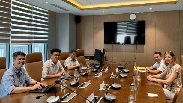 On May 21, 2024 Prof. Ulrike Grote, PD Dr. Trung Thanh Nguyen and Mr. Manh Hung Do from the Leibniz University Hannover (LUH) met with Prof. Pham Khanh Nam, dean, Faculty of Economics at the University of Economics Ho Chi Minh City (UEH) and international Board member of the TVSEP project, as well as Dr. Ho Quoc Thong and Mr. Le Thanh Nhan, both Lecturers from UEH. It was agreed to intensify the research cooperation with the LUH by conducting common data user workshops to promote the use of TVSEP data in the research communities in Vietnam and Thailand.