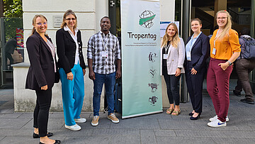 The IUW team (from left: Eva Seewald, Ulrike Grote, Nelson Ochieng, Luzia Deißler, Brigitte Ruesink, Robyn Blake-Rath, and Oliver Schulte (not present)) participated in the international Tropentag conference held in Berlin from September 20th to 22nd, 2023. The leading theme of the conference was "Competing pathways for equitable food systems transformation: trade-offs and synergies".